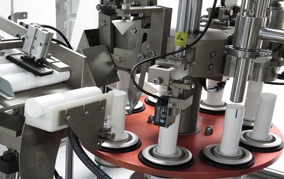 Un equipo neumático de llenado y sellado de tubos aseguran un lote uniforme y preciso. La parte de llenado levanta y coloca el tubo dentro de un componente de calentamiento. Las mordazas neumáticas ofrecen un corte preciso y sin bolsillos. También está disponible una jeringa de acuerdo con la cantidad del producto. Además, un tipo de lotificado adicional está disponible para su compra bajo pedido.